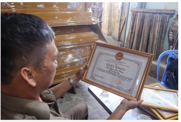 Đó là ông Nguyễn Xuân Thắng (66 tuổi, ngụ khối Đà Sơn, phường Hòa Khánh Nam, quận Liên Chiểu, Đà Nẵng) - người được bà con nơi đây thường gọi với cái tên trìu mến "ông lão nghĩa hiệp". Bởi, vốn làm nghề dịch vụ mai táng nhưng hễ ai đến mua hòm mà kể gia cảnh khó khăn là ông… tặng luôn. Còn những người xấu số chết sông, chết biển, tai nạn... chưa hoặc không có người thân đến nhận, ông sẵn sàng đưa về nhà tẩm liệm, mai táng tươm tất tại mảnh đất dưỡng già của mình.