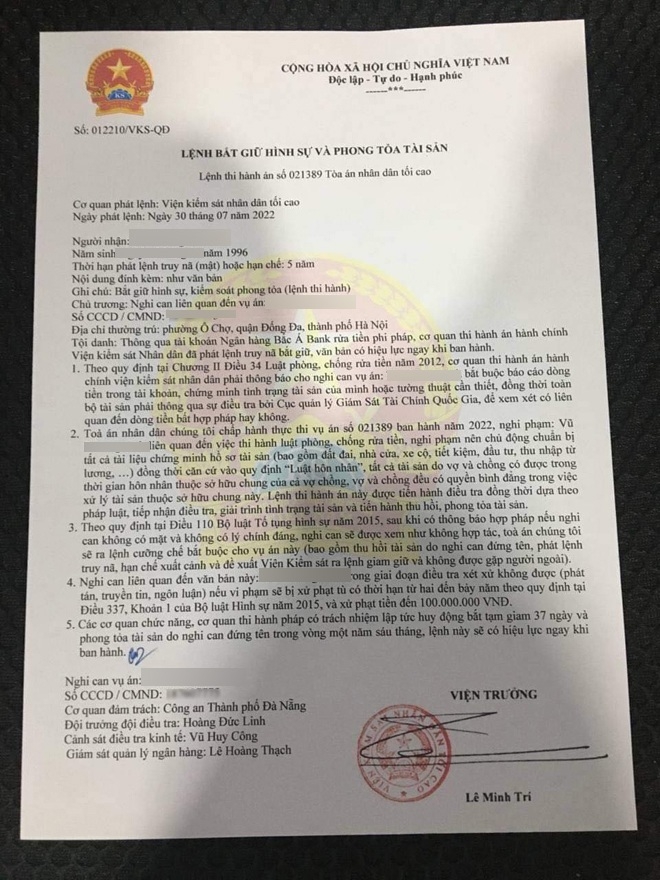 | Lệnh bắt giữ hình sự và phong toả tài sản giả mạo. |