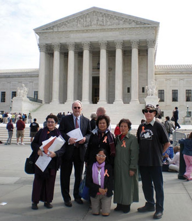 Trần Thị Hoan (giữa) cùng thành viên Đoàn NNCĐDC Việt Nam trước trụ sở Tòa án Tối cao Mỹ