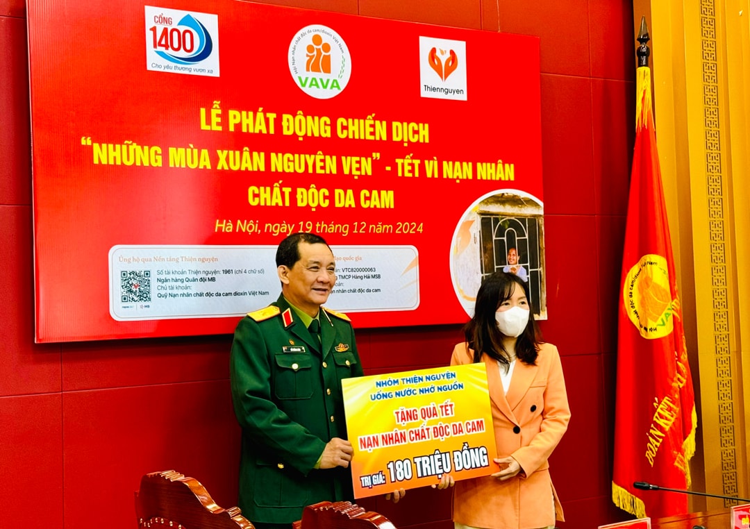 Nhóm thiện nguyện Uống nước nhớ nguồn ủng hộ 180 triệu đồng tặng quà Tết vì nạn nhân chất độc da cam dịp Tết Nguyên đán Ất Tỵ 2025. Ảnh: Thu Minh