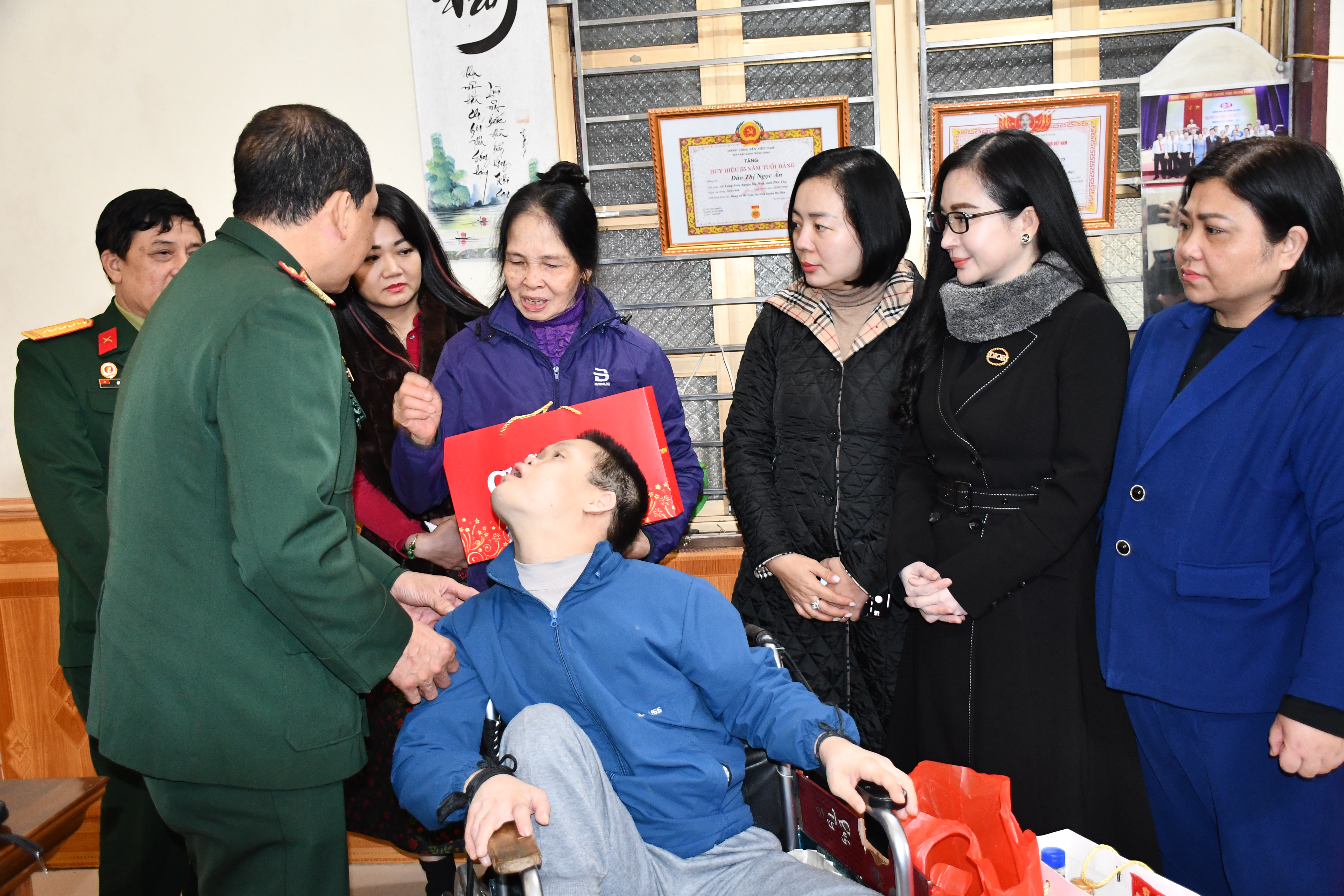 Đoàn rất xúc động chứng kiến sự khó khăn của gia đình nạn nhân Nguyễn Thị Biên (xã Gia Điền, huyện Hạ Hòa) 43 tuổi là 43 năm nằm bất động; nạn nhân Phạm Văn Công (thị trấn Hạ Hòa, huyện Hạ Hòa) 34 tuổi nhưng bị liệt hai chân, không biết nói, luôn bị kích động (để an toàn cho Công, gia đình phải “xích” Công vào xe lăn!).