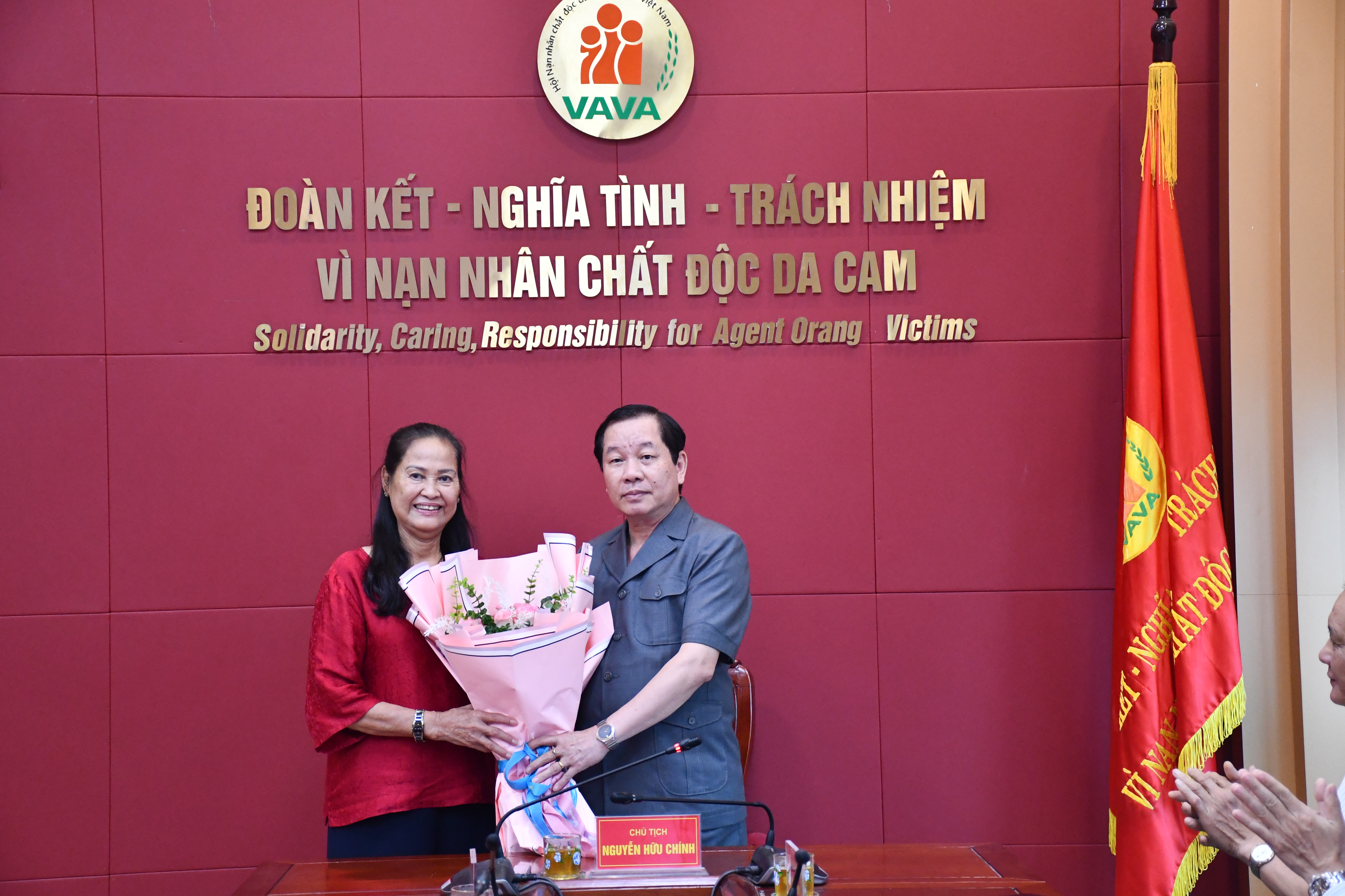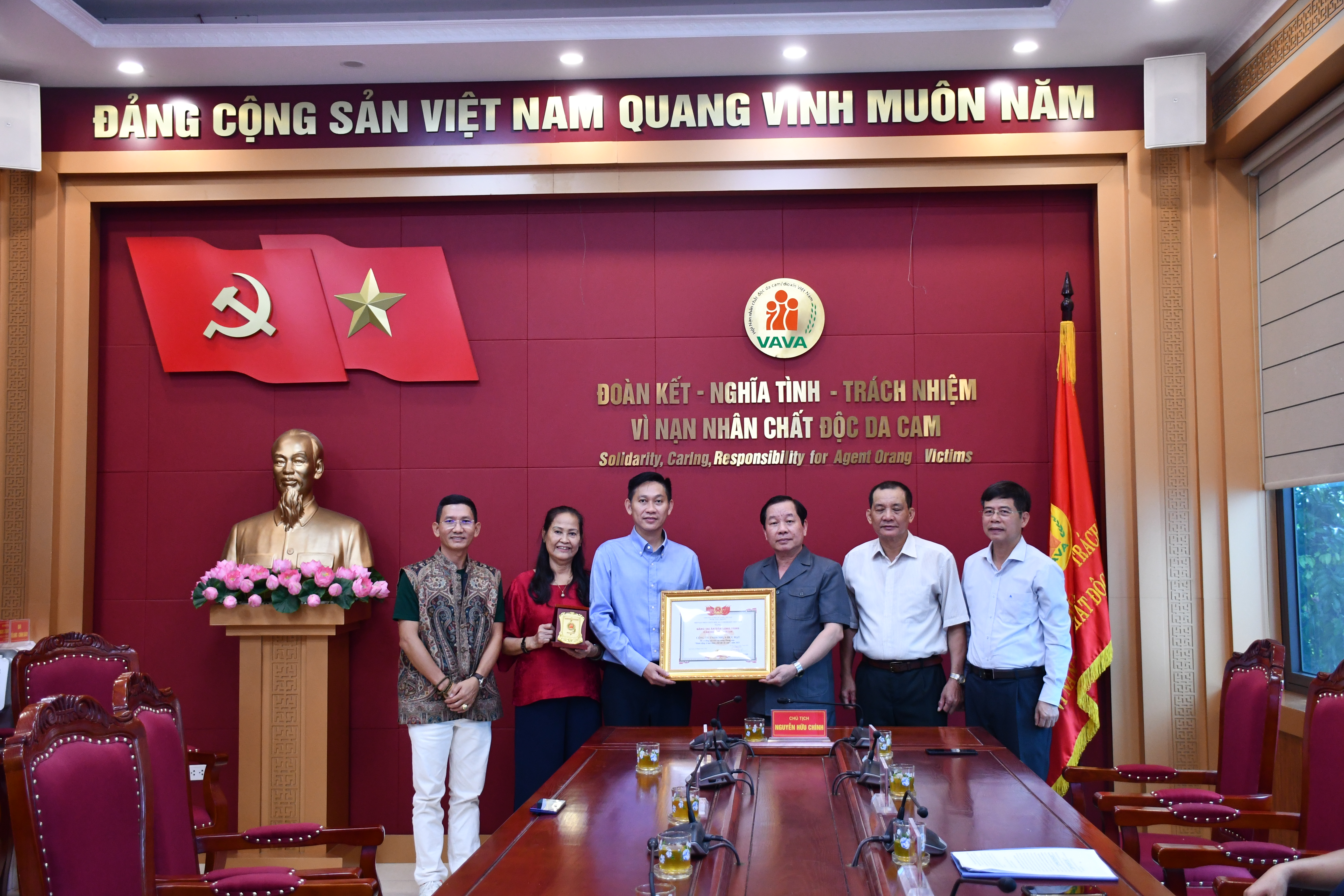 Tiếp nhận khoản hỗ trợ có ông Nguyễn Hữu Chính, Ủy viên Đoàn Chủ tịch Ủy ban Trung ương Mặt trận Tổ quốc Việt Nam, Chủ tịch Hội NNCĐDC/dioxin Việt Nam; các đồng chí Phó Chủ tịch Hội, cùng đại diện các ban, Văn phòng Trung ương Hội và Tạp chí Da cam Việt Nam.