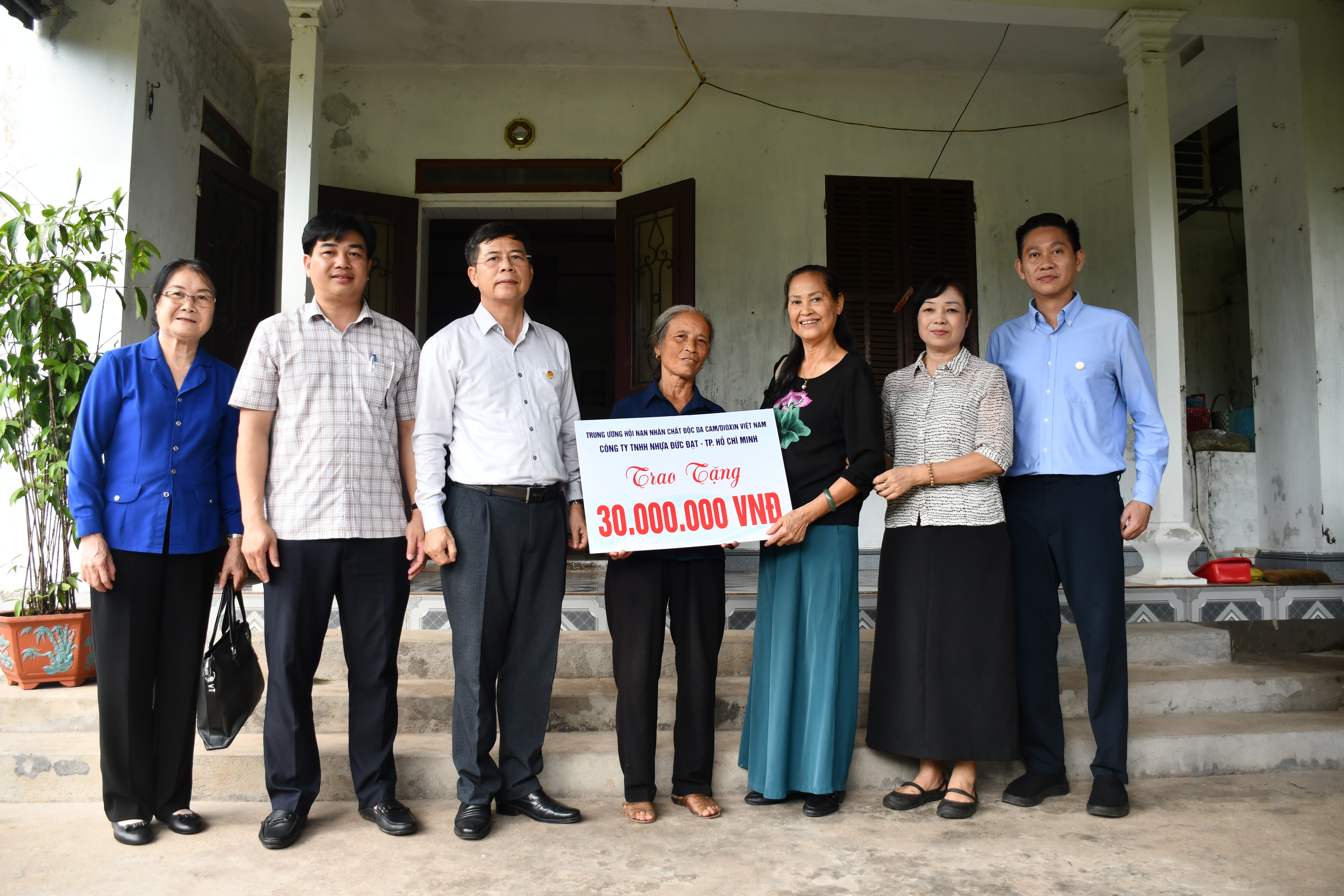 Đoàn Công ty TNHH Nhựa Đức Đạt trực tiếp đến các gia đình trao 30 triệu đồng/hộ cho: