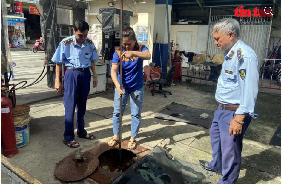 Tại Cửa hàng Số 6 – Công ty TNHH Thương mại vận tải và dịch vụ Xuyên Việt Oil (số 592 - 594 - 596 Lũy Bán Bích, phường Hòa Thạnh, quận Tân Phú) và Chi nhánh Công ty TNHH Dương Anh Thư (số 202 – 204A Trịnh Đình Trọng, phường Phú Trung, quận Tân Phú), Đội QLTT Số 14 đã làm việc với quản lý của cây xăng và tiến hành mở bồn xăng dầu để đo, kiểm tra số lượng còn lại trong các bồn chứa.