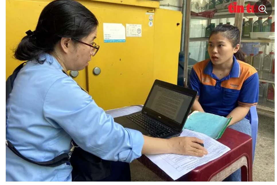 Lực lượng QLTT Số 14 làm việc với quản lý cây xăng 202 – 204A Trịnh Đình Trọng.