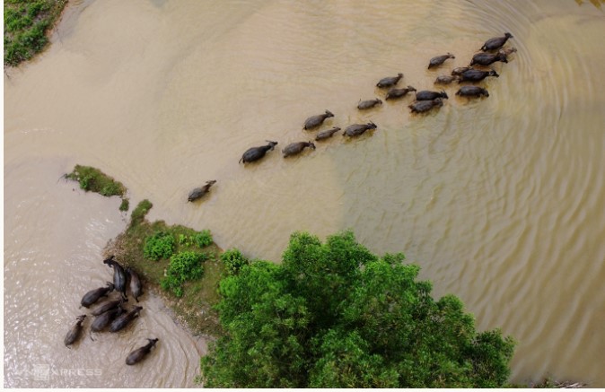 Đàn trâu vài chục con được ông Thi nuôi tại trang trại. Ảnh: Đức Hùng