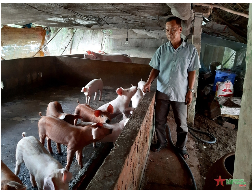 | Cựu chiến binh Nguyễn Thanh Cường phát triển mô hình chăn nuôi lợn thịt đem lại hiệu quả tích cực. |