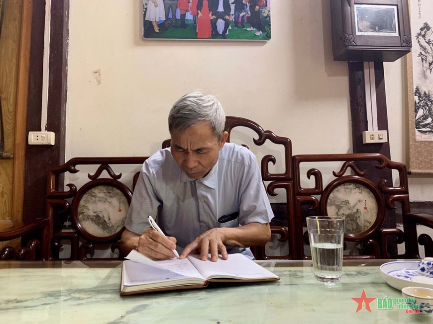 Cựu chiến binh Hoàng Văn Trượng ngồi làm việc tại nhà riêng.