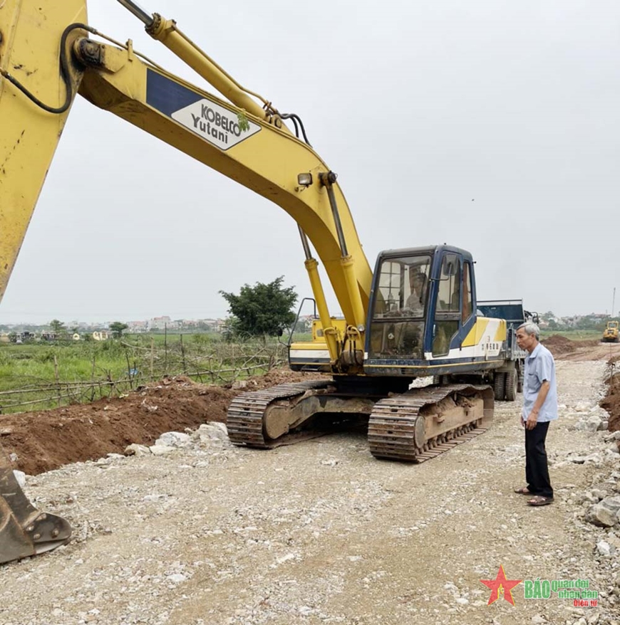 Cựu chiến binh Hoàng Văn Trượng trực tiếp giám sát thi công xây dựng.