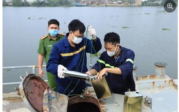 Lực lượng công an lấy mẫu xăng tại các bồn chứa trong vụ án buôn lậu xăng dầu của Phan Thanh Hữu.