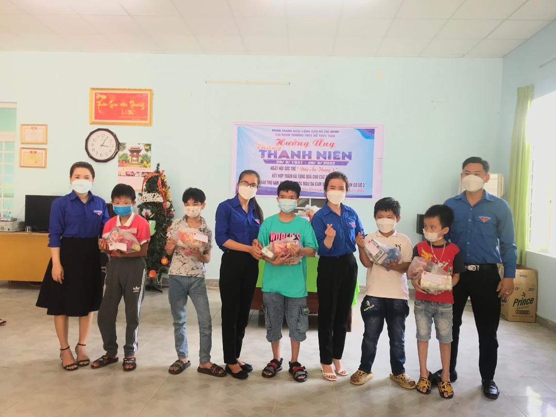 Ngày 23/3/2022, Chi đoàn Trường THCS Đỗ Thúc Tịnh (xã Hòa Khương, huyện Hòa Vang) đã đến thăm, tặng 50 suất quà gồm: bánh, kẹo các loại... cho NNCĐDC tại Trung tâm Bảo trợ NNCĐDC và Trẻ em bất hạnh TP. Đà Nẵng - Cơ sở 3. Tại đây, các thầy, cô giáo và đoàn viên, thanh niên của Trường đã giao lưu văn nghệ, các trò chơi nhỏ và các hoạt động khác, nhằm tạo cho các em được vui tươi, phấn khởi và hòa nhập cộng đồng sau một gian Trung tâm phải tạm cho các em ở nhà do phòng chống dịch Covid-19. Đây là hoạt động hưởng ứng “Tháng thanh Niên” và kỷ niệm 91 năm Ngày thành lập Đoàn Thanh niên Cộng sản Hồ Chí Minh (26/3/1931-26/3/2022) của Chi đoàn Trường THCS Đỗ Thúc Tịnh.