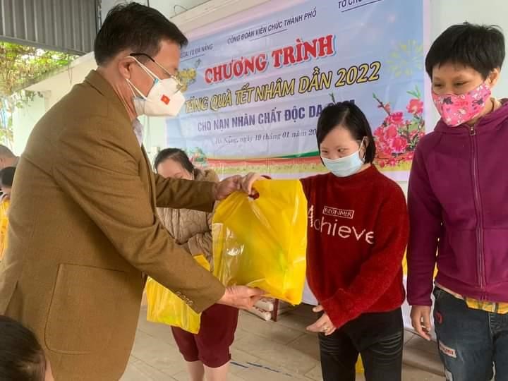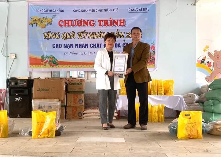 Mỗi suất quà gồm: gạo, dầu ăn, nước mắn, đường trắng, mức gừng và các nhu yếu phẩm khác trị giá 250.000 đồng; ngoài ra tổ chức ASSORV còn hỗ trợ thêm mỗi người 1 cái chăn ấm, nhằm giúp đỡ cho các nạn nhân có thêm điều kiện vui xuân đón tết được vui tươi đầm ấm. Được biết trong nhiều năm qua, khi tết đến xuân về thì Sở Ngoại Vụ thành phố phối hợp với Công đoàn Viên chức thành phố Đà Nẵng và Tổ chức ASSORV (Pháp) tại Đà Nẵng đều dành những phần quà Tết cho đoàn viên, người lao động và nạn nhân da cam.