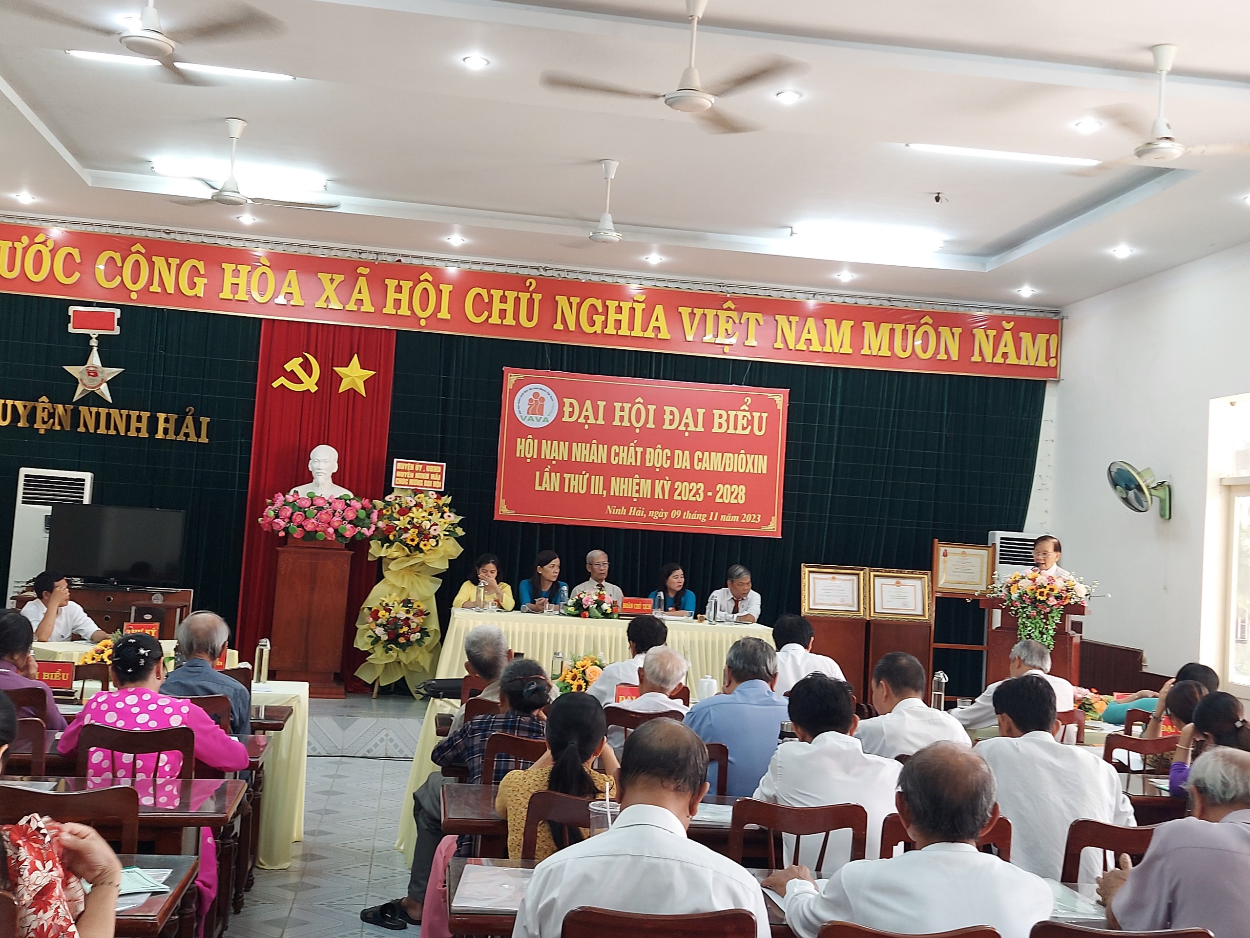 Hội Nạn nhân chất độc da cam/dioxin huyện hiện Ninh Hải hiện có 230 hội viên; trong nhiệm kỳ 2018 - 2023 đã hoàn thành tốt các nhiệm vụ về tổ chức xây dựng Hội, chăm sóc giúp đỡ NNCĐDC, tổ chức xây dựng và phát triển quỹ hội, thường xuyên và bằng các hình thức, biện pháp phù hợp để tuyên truyền và thực hiện các phong thi đua; quan tâm, vận động, tạo nguồn lực chăm sóc, giúp đỡ NNCĐDC. Nhiệm kỳ qua Hội đã vận động và tiếp nhận được 4.327 suất quà, trị giá 773.450.000 đồng, trao tặng cho NNCĐDC; xây dựng tốt Quỹ Nạn nhân chất độc da cam, với tổng số tiền là 219.240.000 đồng; ngoài ra, còn xây dựng quỹ hội, quỹ tình thương được chú trọng duy trì phát triển dựa trên tinh thần tự nguyện, tương thân tương ái... Đồng thời, khảo sát, xem xét tạo điều kiện để hưởng chế độ chính sách đối với các đối tượng nghi bị nhiễm chất độc hoá học và NNCĐDC trong toàn huyện; mỗi năm vận động tài trợ, huy động từ nhà hảo tâm tặng ít nhất 500 suất quà vào các dịp lễ, tết...