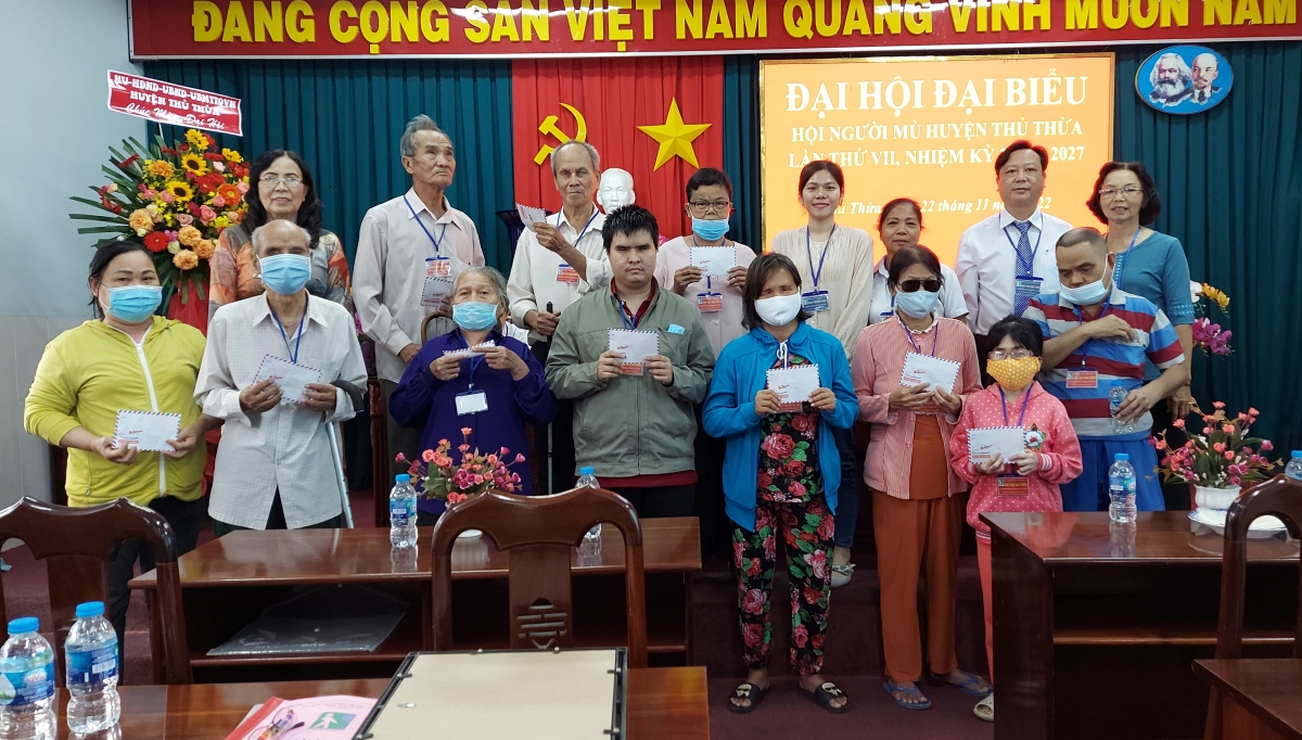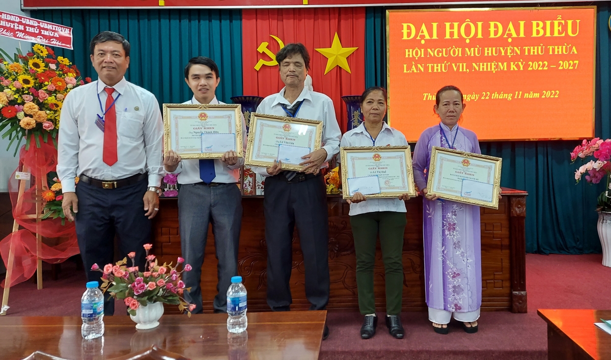 Dịp này, UBND huyện đã tặng Giấy khen cho 1 tập thể và 3 cá nhân có thành tích tốt trong nhiệm kỳ qua; mạnh thường quân ở thị trấn Thủ Thừa tặng 26 phần quà bằng tiền mặt, mỗi phần quà là 300.000 đồng cho các đại biểu là người mù dự Đại hội, tổng trị giá 7 triệu 800 ngàn đồng./.