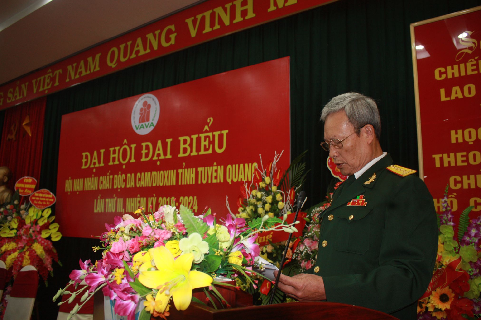 Phát biểu chỉ đạo Đại hội, ông Nguyễn Thế Giang, Tỉnh ủy viên, Phó chủ tịch UBND đã biểu dương kết quả mà Hội NNCĐDC/dioxin tỉnh Tuyên Quang đã đạt được. Đồng thời, yêu cầu Hội NNCĐDC/dioxin tỉnh thực hiện tốt phương châm, tư tưởng chỉ đạo: “Đoàn kết – Nghĩa tình – trách nhiệm – Vì NNCĐDC”. Tập trung thực hiện tốt nhiệm vụ củng cố, nâng cao chất lượng, hiệu quả hoạt động của tổ chức hội các cấp. Năng động, sáng tạo, đổi mới công tác tuyên truyền, tích cực kêu gọi các nhà hảo tâm, các tổ chức từ thiện, doanh nghiệp ủng hộ, giúp đỡ “xoa dịu nỗi đau da cam”. Đồng thời, Hội phải phối hợp chặt chẽ với các ban, ngành, đoàn thể xã hội trong tỉnh để hoàn thành tốt chức năng, nhiệm vụ được giao, xứng đáng là cầu nối, là chỗ dựa vững chắc, địa chỉ tin cậy của NNCĐDC.