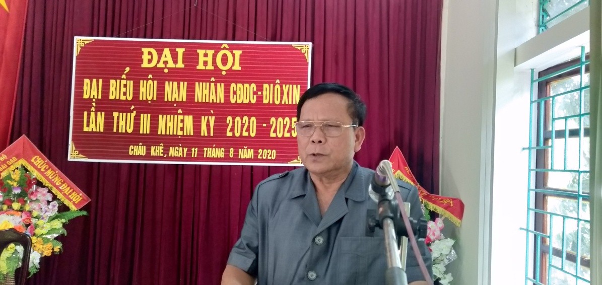 Sáng 11/8/2020, Hội NNCĐDC/dioxin xã Châu Khê, huyện Con Cuông, tỉnh Nghệ An tổ chức Đại hội lần thứ III, nhiệm kỳ 2020 – 2025. Dự Đại hội có đồng chí Đại tá Vi Văn Dĩnh, Ủy viên BCH Hội NNCĐDC/dioxin tỉnh, Chủ tịch Hội NNCĐDC/dioxin huyện Con Cuông, các đồng chí Thường trực Hội NNCĐDC/dioxin huyện Con Cuông; Lãnh đạo Đảng ủy, chính quyền, các ban, ngành, đoàn thể xã Châu Khê, cùng với 4 Bí thư Chi bộ của 4 thôn, bản, nạn nhân thuộc xã Châu Khê và 13 hội viên.