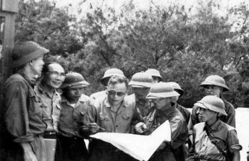 | Thượng tướng Chu Huy Mân - nguyên Tư lệnh Quân giải phóng Quân khu 5 đang kiểm tra, theo dõi các mũi tấn công đánh vào thành phố Đà Nẵng tháng 3/1975 - Ảnh tư liệu TTXVN |