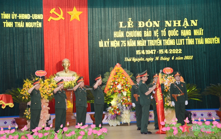 Phát biểu tại buổi lễ, thay mặt Thường vụ Quân ủy Trung ương, Bộ Quốc phòng, Đại tướng Phan Văn Giang biểu dương và chúc mừng những thành tích, kết quả đạt được rất quan trọng của LLVT tỉnh Thái Nguyên suốt 75 năm qua.