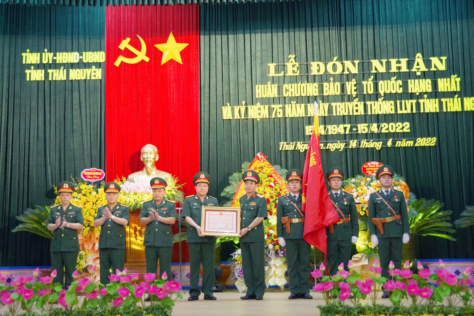 Tại buổi lễ, thừa ủy quyền của Chủ tịch nước, Đại tướng Phan Văn Giang đã trao Huân chương Bảo vệ Tổ quốc hạng Nhất tặng LLVT tỉnh Thái Nguyên.