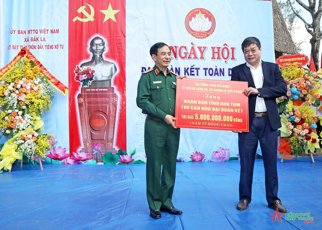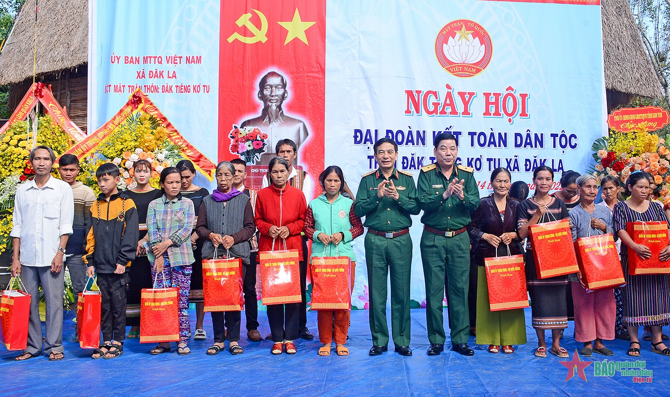 Nhân dịp dự “Ngày hội Đại đoàn kết toàn dân tộc”, thay mặt Đoàn công tác, Bộ trưởng Bộ Quốc phòng trao 100 “Nhà Đại đoàn kết” tặng các gia đình còn khó khăn về nhà ở tỉnh Kon Tum. Bên cạnh đó, Ủy ban Mặt trận Tổ quốc Việt Nam, Bộ Quốc phòng, Quân khu 5, Quân đoàn 3, tỉnh Kon Tum cũng trao nhiều phần quà ý nghĩa tặng nhân dân thôn Đăk Tiêng Kơ Tu.