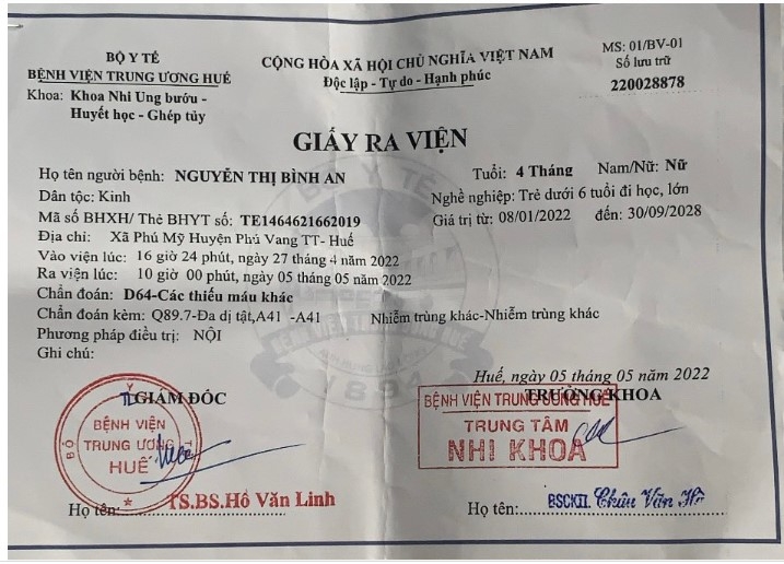 Nhưng rồi, bất hạnh vẫn không chịu buông tha cho con. 20 ngày tuổi, con bị vàng da, ít ăn ít ngủ, quấy khóc suốt ngày đêm. Tiếp tục đưa con đi thăm khám thì một lần nữa mẹ ngã quỵ khi biết con mắc bệnh tan máu bẩm sinh. Bác sĩ cho biết, đây là một căn bệnh hiểm nghèo, phải truyền máu thường xuyên mới duy trì được sự sống. Cũng từ đó, hết ngày này qua tháng khác mẹ ôm con cầu cứu bệnh viện giành giật sự sống.