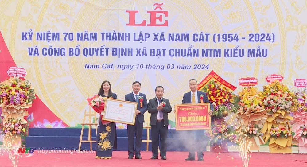 Từ một xã thuần nông cơ sở vật chất còn nhiều hạn chế, đời sống nhân dân còn gặp nhiều khó khăn, năm 2014 xã Nam Cát được UBND tỉnh công nhận đạt chuẩn xã NTM với 19/19 tiêu chí đạt chuẩn theo quy định; địa phương này tiếp tục nỗ lực để hoàn thành NTM nâng cao năm 2021 và đến tháng 4 năm 2023 được UBND tỉnh Nghệ An công nhận xã đạt chuẩn NTM kiểu mẫu.