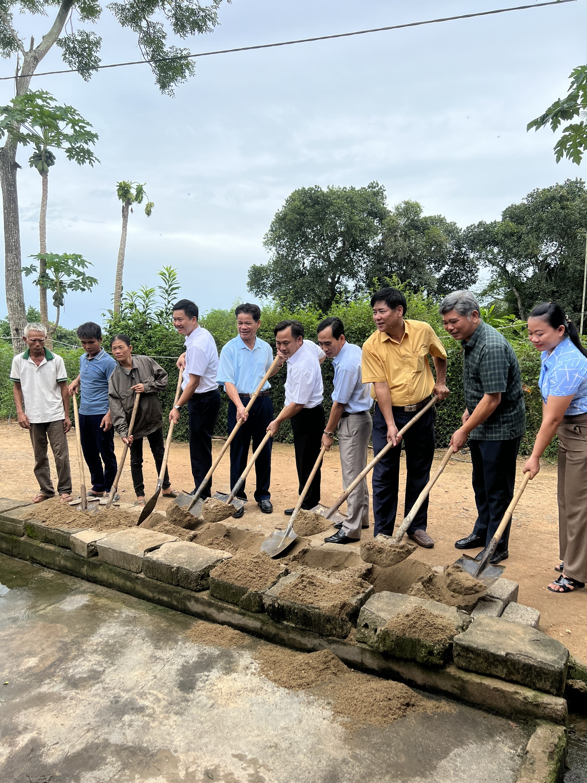 Thường trực Đảng ủy khối Doanh nghiệp tỉnh, Lãnh đạo chính quyền địa phương và các đơn vị đồng hành thực hiện nghi thức khởi công xây dựng 4 căn nhà cho các gia đình có hoàn cảnh khó khăn tại xã Thanh Xuân, huyện Thanh Chương