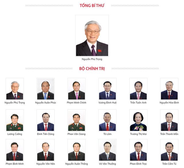 Danh sách Bộ Chính trị, Ban Bí thư và Ủy ban Kiểm tra Trung ương khóa XIII: