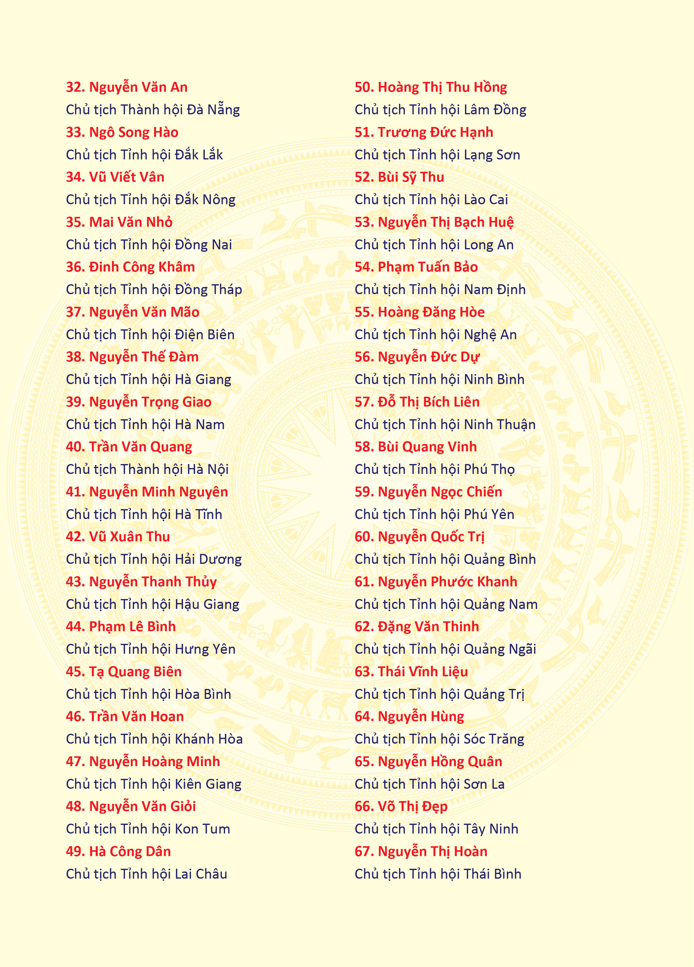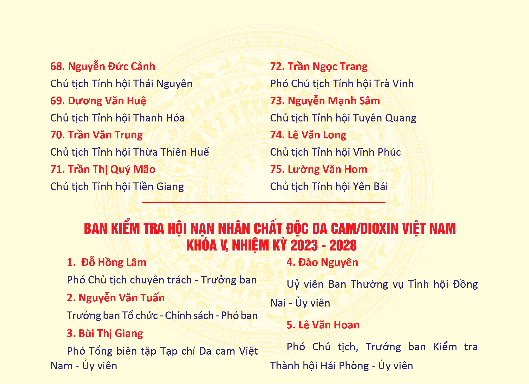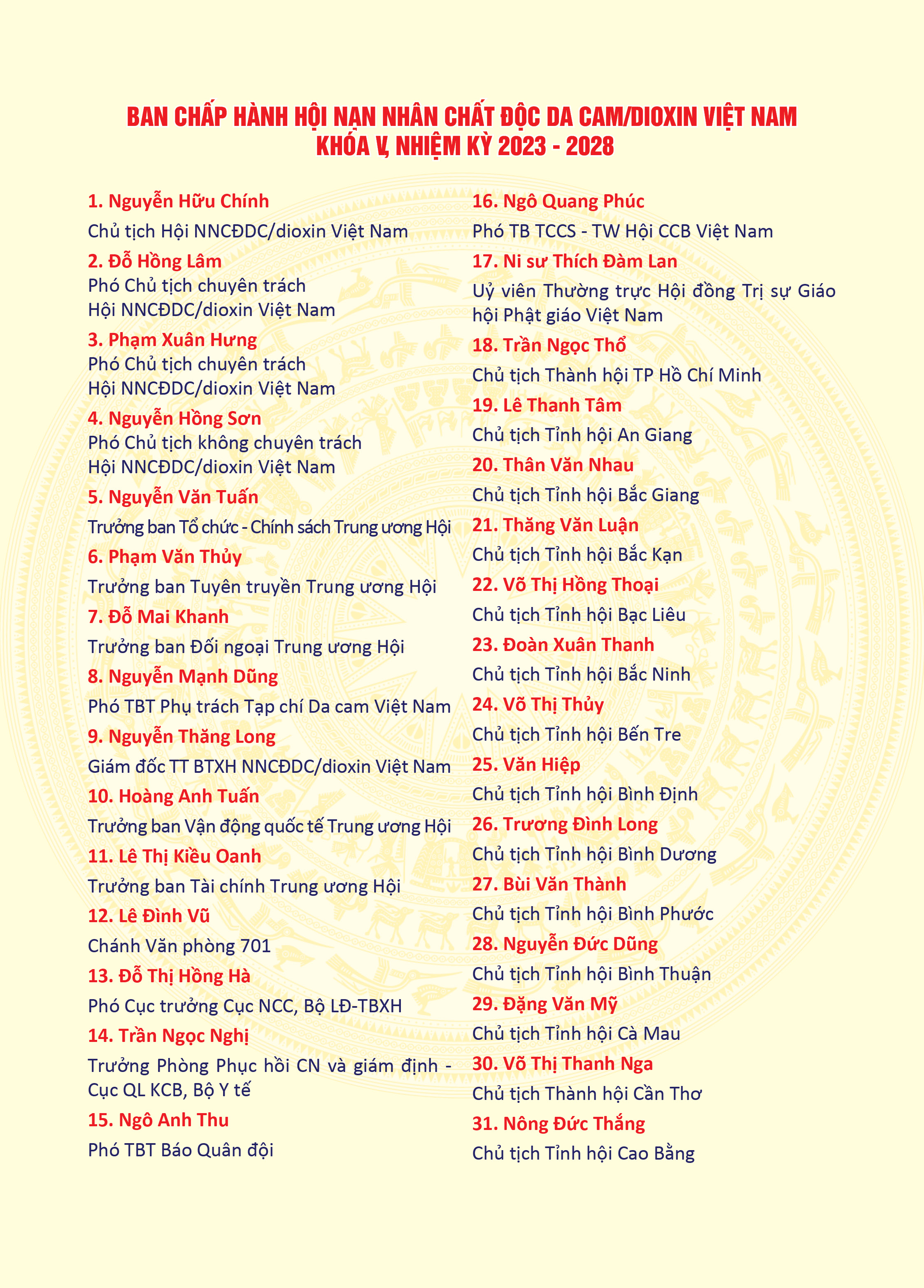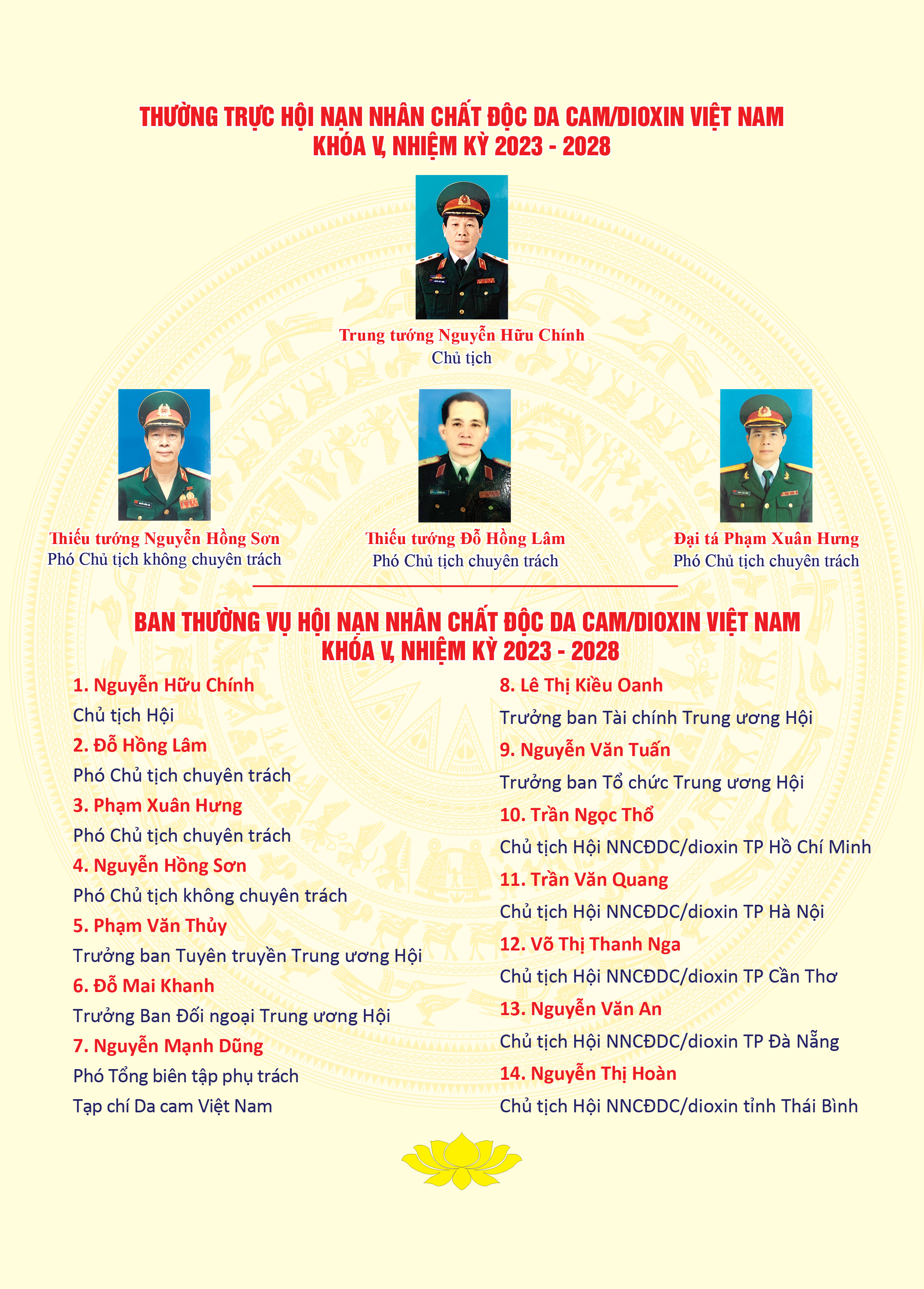 Danh sách: Thường trực, Ban Thường vụ, Ban Chấp hành, Ban Kiểm tra Hội NNCĐDC/dioxin Việt Nam khóa V, nhiệm kỳ 2023 -2028