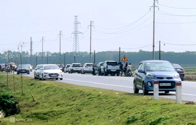 Ôtô đổ về xem đất ở thôn Lộc Thọ, xã Việt Tiến, Hà Tĩnh cuối tháng 2. Ảnh: Hùng Lê