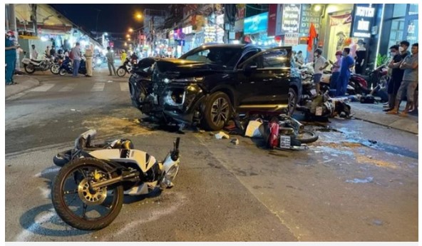 Vào thời điểm xảy ra tai nạn, chiếc Audi màu trắng lao đi với tốc độ rất nhanh, tông trực diện vào xe máy đang qua ngã tư, khiến 3 nạn nhân trên xe máy văng xa và tử vong tại chỗ.