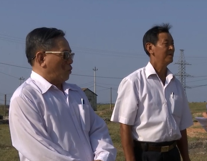 | Ông Trần Đình Lập (trái) và ông Trần Tiến Vinh, là cựu dân quân xã Quảng Thuận thăm lại di tích bến phà Gianh |