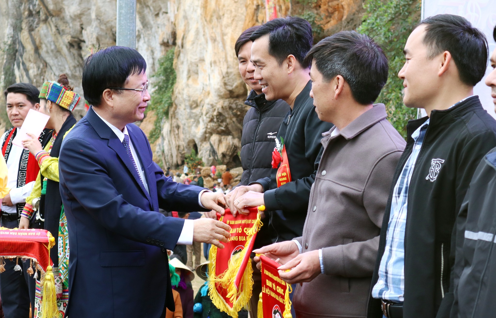 Khách tỉnh và các địa phương đến dự, chứng kiến lễ hội Hang Bua