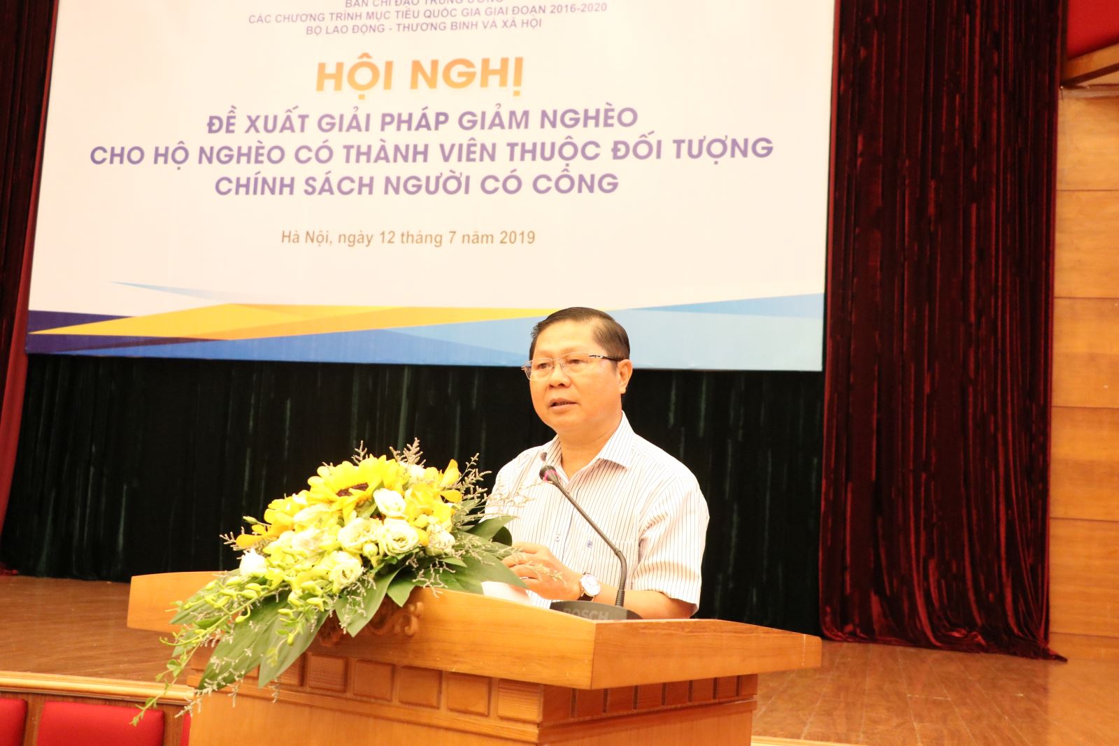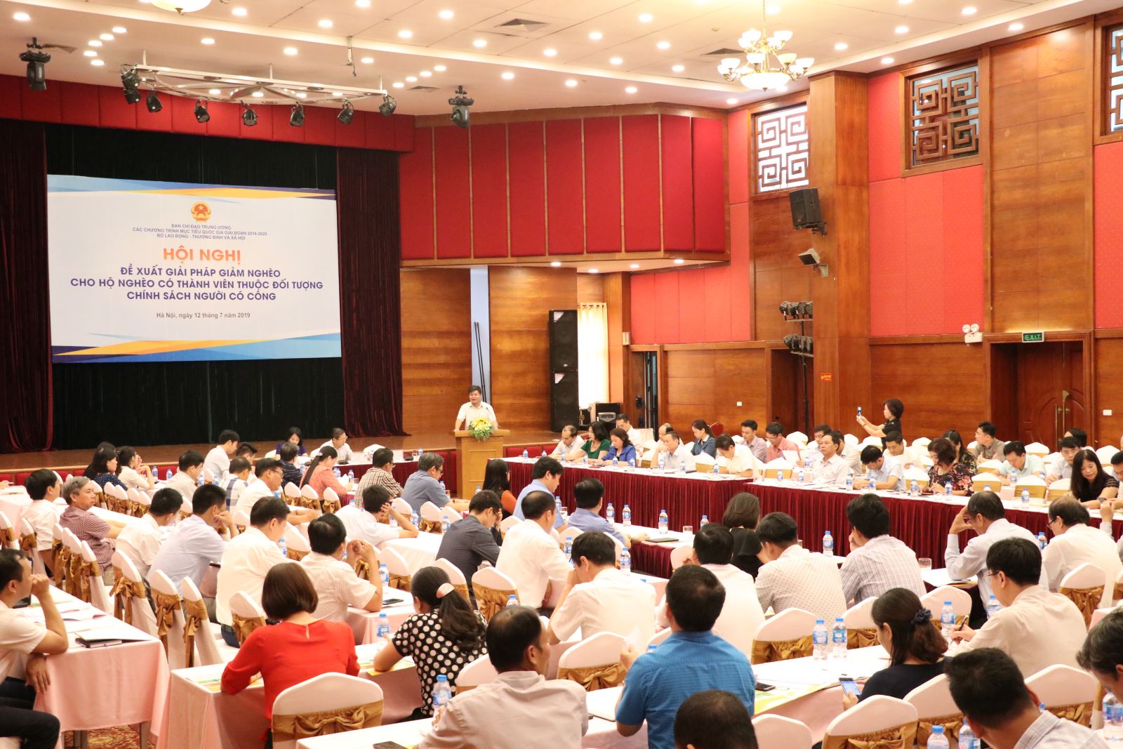 Nhằm cải thiện và nâng cao chất lượng cuộc sống cho người có công thuộc hộ nghèo, thực hiện Nghị quyết của Quốc hội, đến hết năm 2020 cả nước không còn hộ nghèo có thành viên thuộc đối tượng chính sách người có công, sáng ngày 12/7/2019, tại Hà Nội, Ban Chỉ đạo trung ương các Chương trình mục tiêu quốc gia giai đoạn 2016-2020 phối hợp với Bộ Lao động-Thương binh và Xã hội (LĐ-TBXH) tổ chức Hội nghị “Đề xuất giải pháp giảm nghèo cho hộ nghèo có thành viên thuộc đối tượng chính sách người có công”. Thứ trưởng Bộ LĐ-TBXH Lê Tấn Dũng chủ trì Hội nghị. Tham dự Hội nghị còn có ông Ngô Trường Thi – Vụ trưởng, Chánh Văn phòng quốc gia giảm nghèo; bà Đỗ Thị Hồng Hà – Phó Cục trưởng Cục Người có công; đại diện lãnh đạo một số đơn vị thuộc Bộ; đại diện Uỷ ban Các vấn đề xã hội của Quốc hội, Uỷ ban Trung ương Mặt trân Tổ quốc Việt Nam, Hội Liên hiệp phụ nữ Việt Nam, Hội Cựu chiến binh Việt Nam cùng Lãnh đạo UBND/Sở LĐ-TBXH các tỉnh, thành phố.