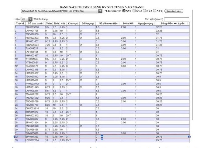 Nếu tính theo điểm thi, trong tổng số 476 thí sinh trúng tuyển ngành Y đa khoa, chỉ có 84 thí sinh có tổng điểm 3 môn thi đạt từ mức điểm chuẩn 29,25 trở lên.
