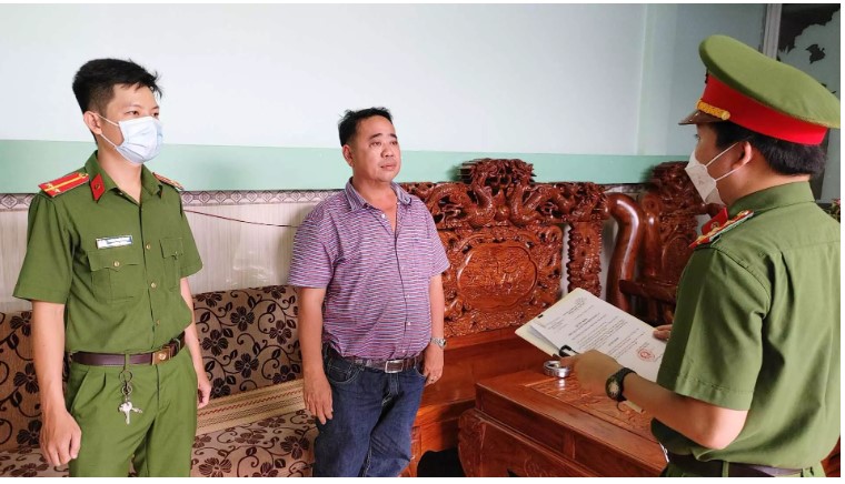 Cơ quan điều tra đọc lệnh khởi tố bị can Ngô Phú Cường. Ảnh: Nghiêm Túc