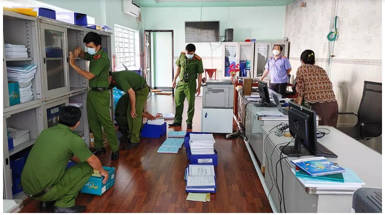 Công an An Giang khám xét nơi ở, nơi làm việc của bị can Cường. Ảnh: Nghiêm Túc