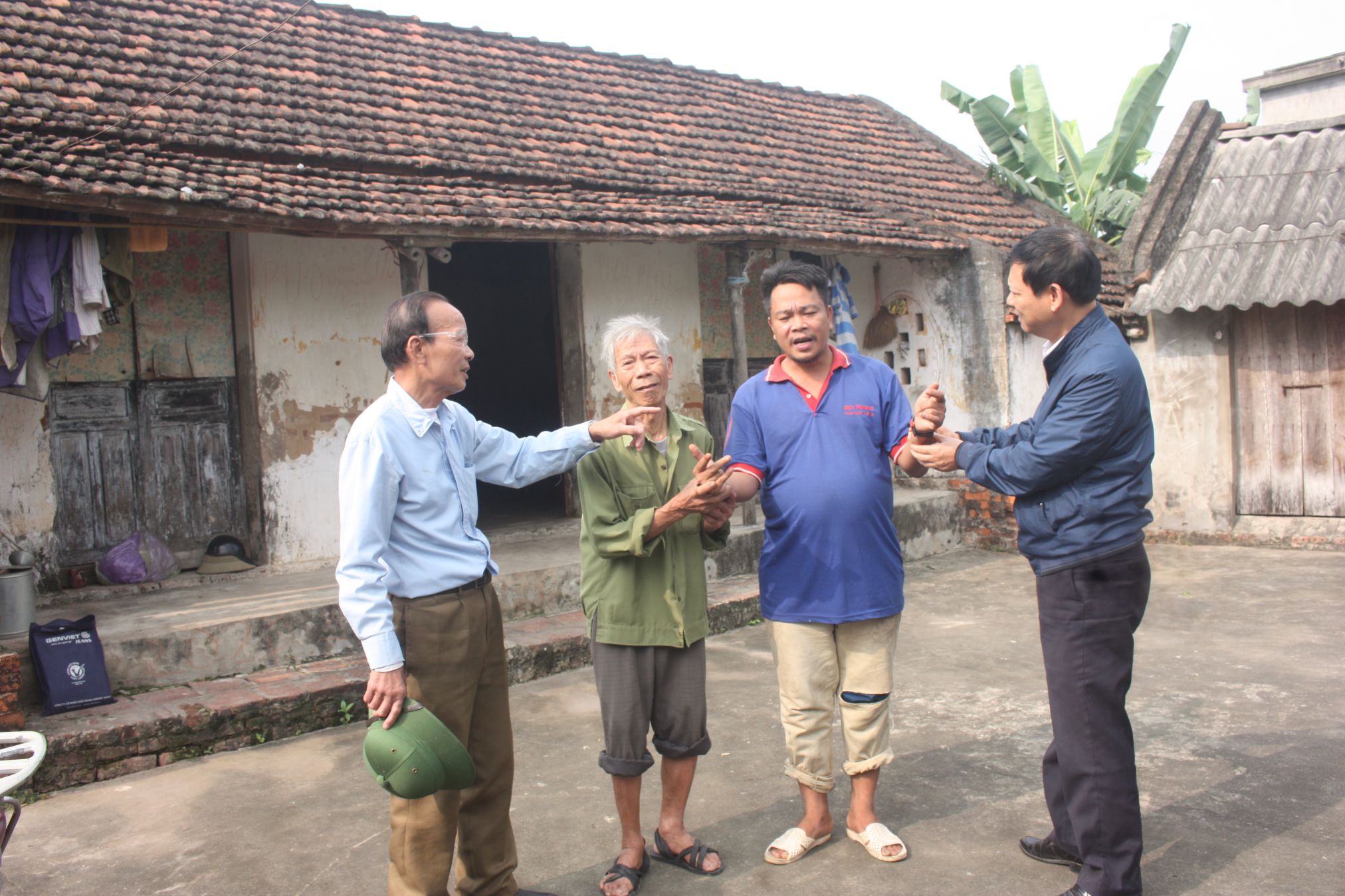 Lãnh đạo Phòng LĐTBXH huyện Nam Trực, Bí thư chi bộ xóm 14 thăm hỏi hai bố con ông Bùi Quang Hiệu, Bùi Văn Phó.