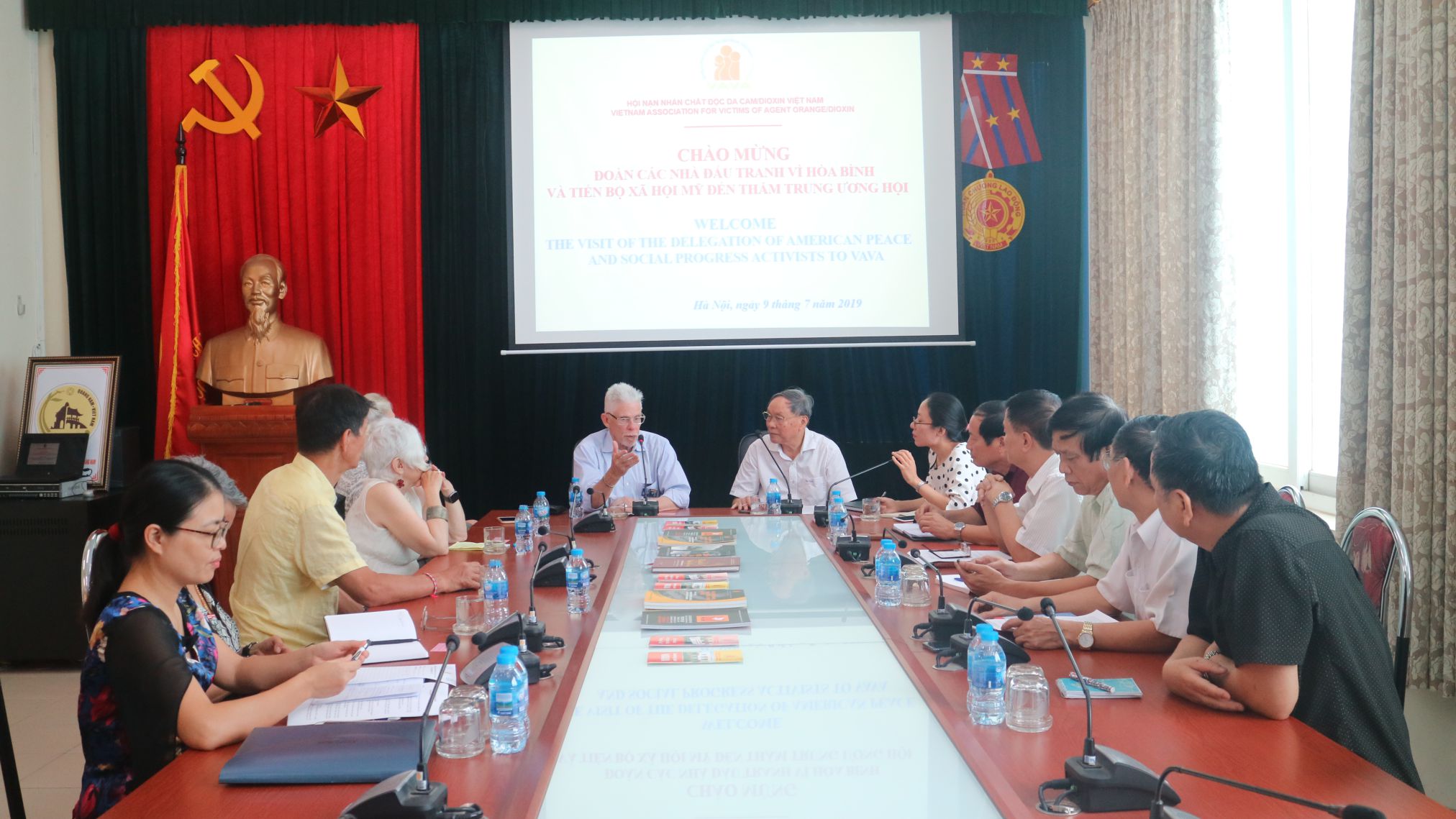 Kết thúc buổi làm việc, các nhà đấu tranh vì hòa bình và tiến bộ xã hội Mỹ đánh giá cao những nỗ lực của Việt Nam trong công cuộc khắc phục hậu quả chất độc da cam/dioxin nói chung và những cố gắng hết mình vì cuộc đấu tranh đòi công lý cho nạn nhân chất độc da cam/dioxin Việt Nam của VAVA theo đuổi. Đồng thời, cảm ơn VAVA đã đón tiếp chân thành và cung cấp các thông tin mà đoàn quan tâm. Đoàn khẳng định, đây là những thông tin quan trọng để làm tư liệu tuyên truyền, làm cho nhân dân Mỹ cũng như nhân dân thế giới hiểu hơn về bản chất, hậu quả của cuộc chiến tranh hóa học do Mỹ tiến hành trong chiến tranh Việt Nam và cuộc đấu tranh đòi công lý của nạn nhân chất độc da cam/dioxin Việt Nam. Đoàn hy vọng, Chính phủ Hoa Kỳ sẽ có trách nhiệm đối với thảm họa da cam do chính họ gây ra đối với nhân dân Việt Nam.
