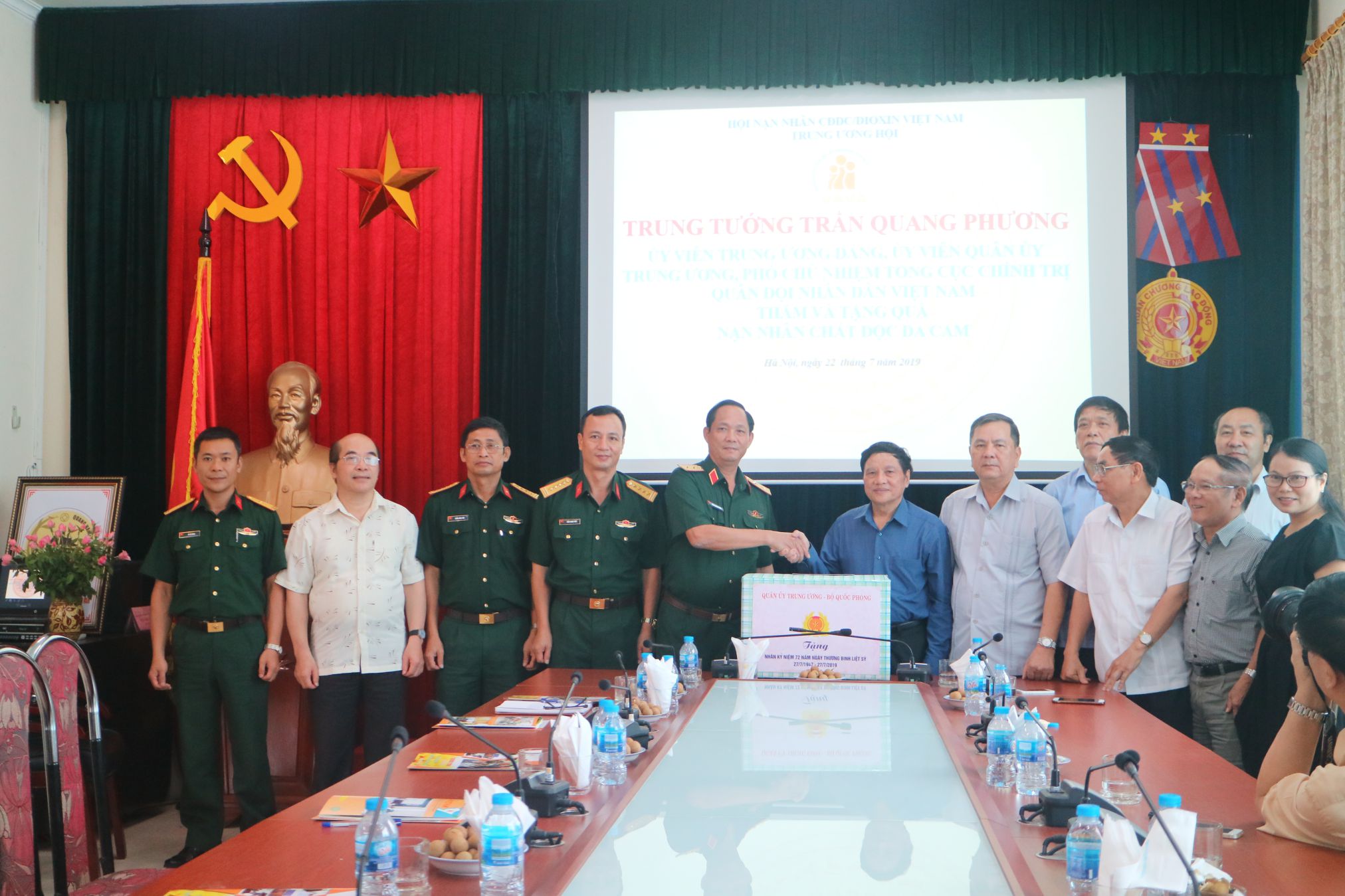 Đoàn cán bộ Tổng cục Chính trị Quân đội nhân dân Việt Nam do Trung tướng Trần Quang Phương, Ủy viên Trung ương Đảng, Ủy viên Quân ủy Trung ương, Phó Chủ nhiệm Tổng cục Chính trị Quân đội nhân dân Việt Nam làm Trưởng đoàn, thăm, làm việc và tặng quà Trung ương Hội Nạn nhân chất độc da cam/dioxin Việt Nam