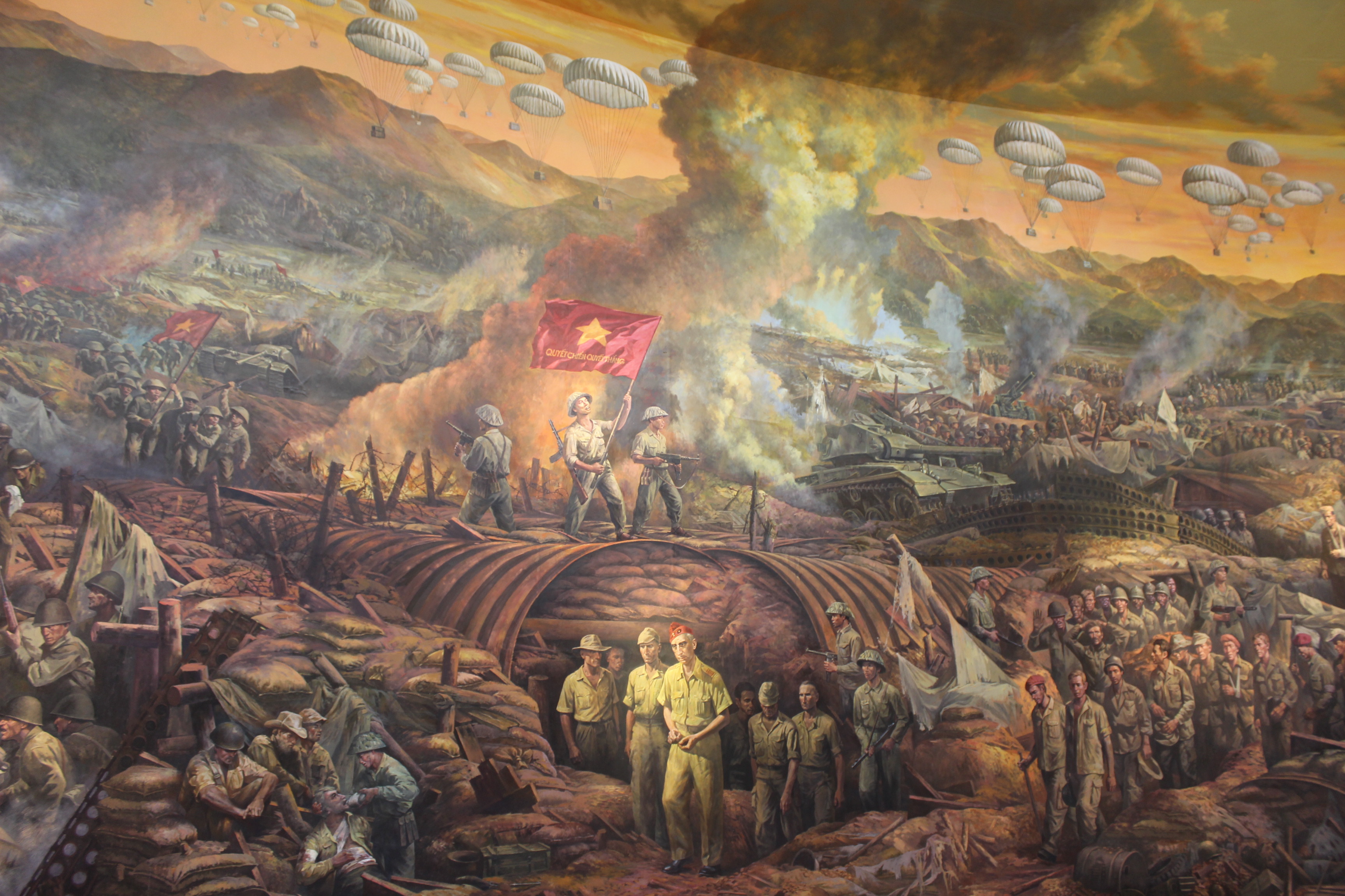Tranh mô phỏng bắt sống Tướng Đờ Cát và toàn bộ địch ra hàng tại Bảo tàng Điện Biên Phủ