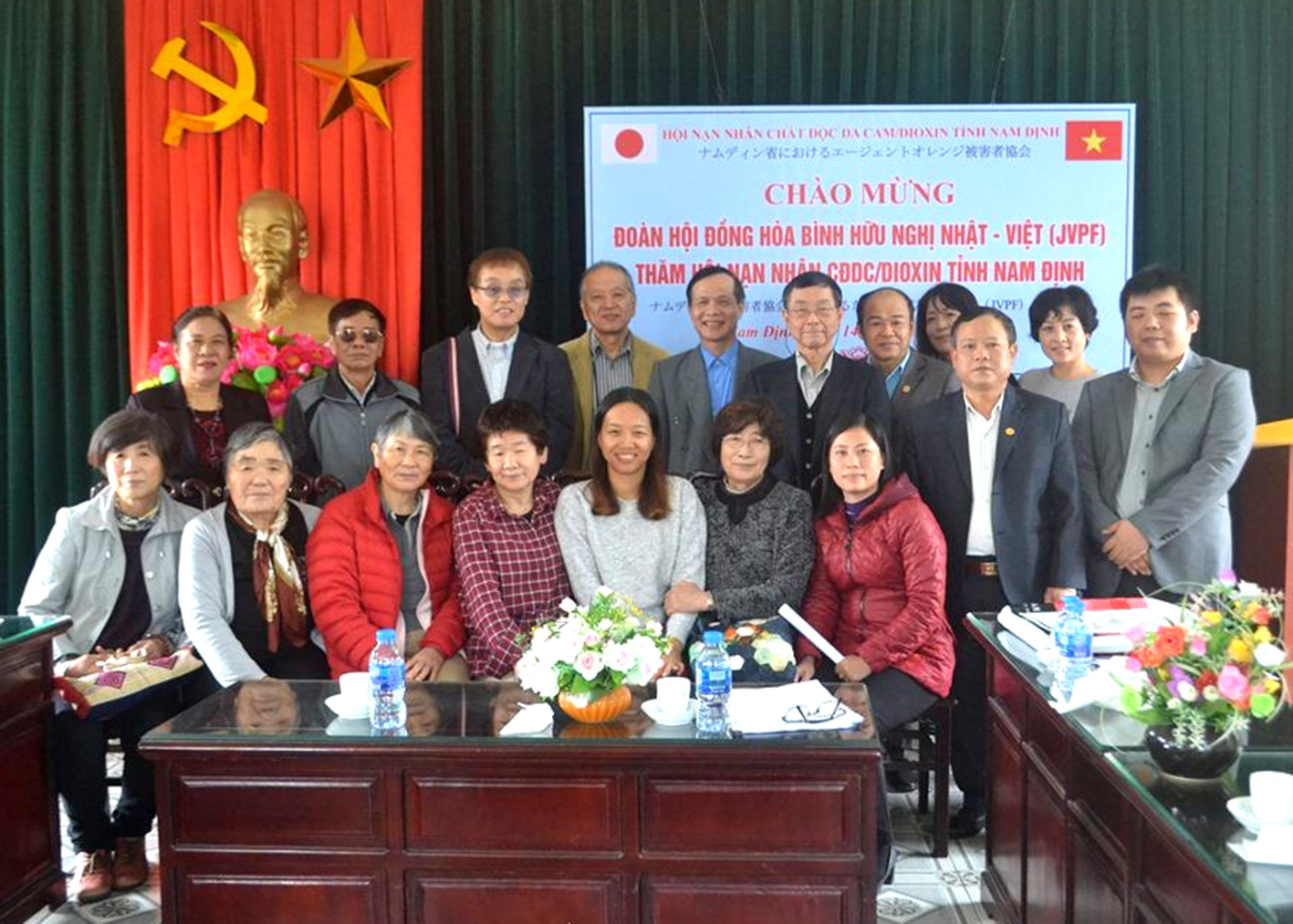 Đoàn đại biểu Hội đồng hòa bình Hữu nghị Nhật - Việt (JPVF) vừa đến thăm Hội Nạn nhân CĐDC/dioxin tỉnh Nam Định. Đoàn gồm 14 người do ông Kamata Atsumori, Phó Tổng thư ký Hội làm Trưởng đoàn.