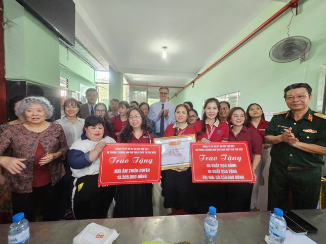 Tại Mái ấm Thiện Duyên (huyện Củ Chi), đoàn phối hợp trao 45 suất học bổng, tổng trị giá hơn 63,6 triệu đồng, góp phần hỗ trợ các em vươn lên trong học tập và cuộc sống.
