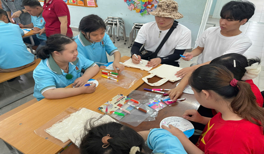 Trong chương trình, đoàn khách Hàn Quốc đã giao lưu, vẽ tranh cùng các nạn nhân, tham gia trải nghiệm các mô hình làm hoa, làm hương, các trò chơi, tham quan phòng truyền thống và cảnh quan Trung tâm. Không khí thân tình, ấm áp đã để lại nhiều ấn tượng tốt đẹp cho đoàn. Dịp này, đoàn đã trao nhiều phần quà cho nạn nhân và hỗ trợ nhu yếu phẩm, kinh phí cho Trung tâm, góp phần duy trì việc chăm sóc, nuôi dưỡng thường xuyên, lâu dài cho các nạn nhân.