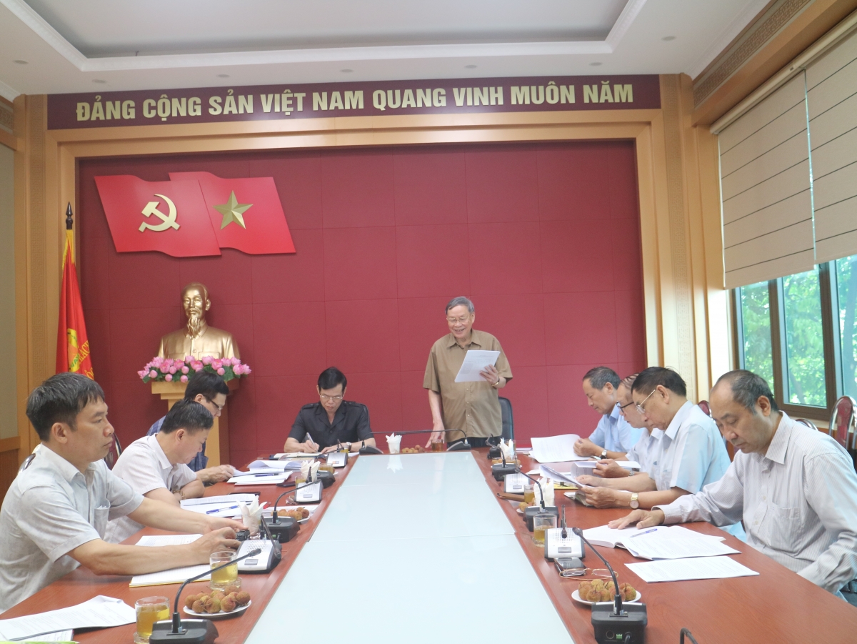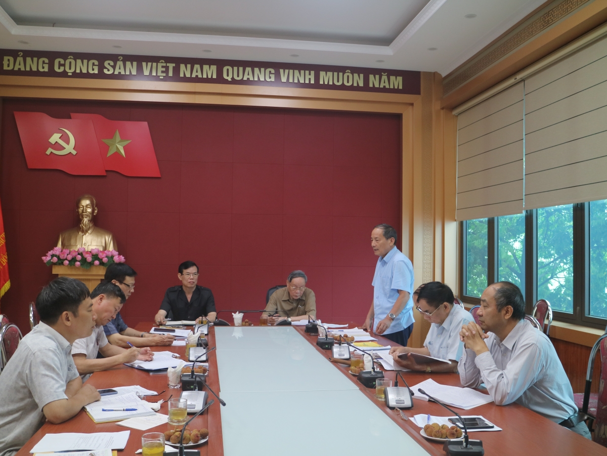 | Chủ tịch Nguyễn Văn Rinh trình bày báo cáo trong buổi làm việc |