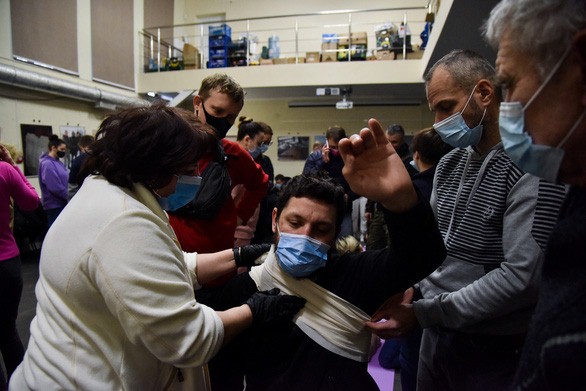 Cứu chữa người bị thương ở thành phố Lviv, Ukraine ngày 11-3
