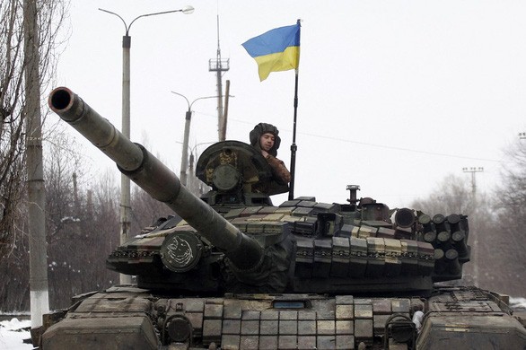 Xe tăng của quân đội Ukraine đi làm nhiệm vụ tại vùng Lugansk ngày 11-3