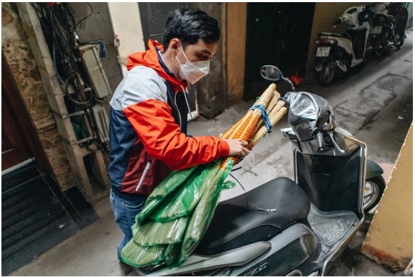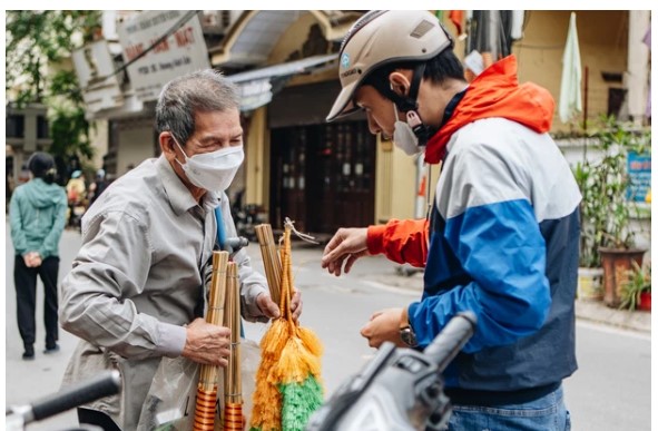 "Mình chạy công trình gần chợ Yên Phụ, biết được câu chuyện của ông bà qua mạng xã hội, nên cùng bạn bè gom mua 8 cây chổi để ủng hộ", anh Hoàng Anh Dũng nói.