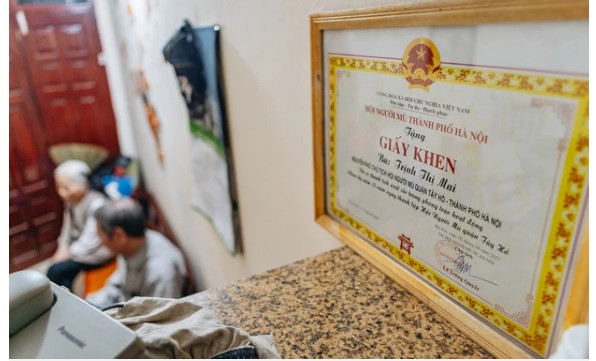 Bà Mai được tặng giấy khen thành tích xuất sắc trong phong trào hoạt động của Hội người mù quận Tây Hồ