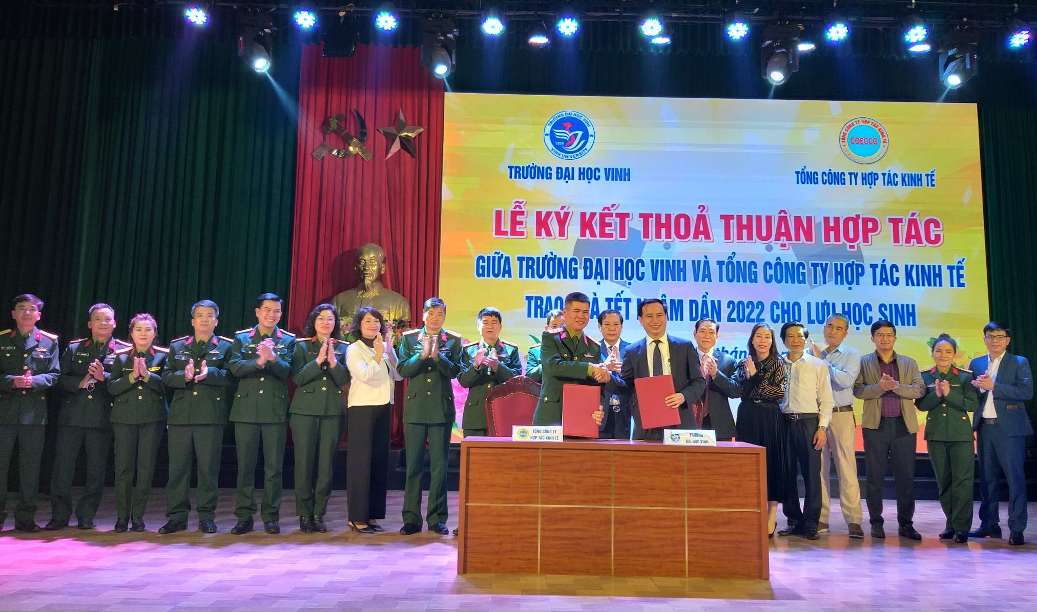 Lễ ký kết thỏa thuận đào tạo nhân lực chất lượng cao là lưu học sinh Lào theo học tại Đại học Vinh cho Tổng Công ty hợp tác Quân khu 4